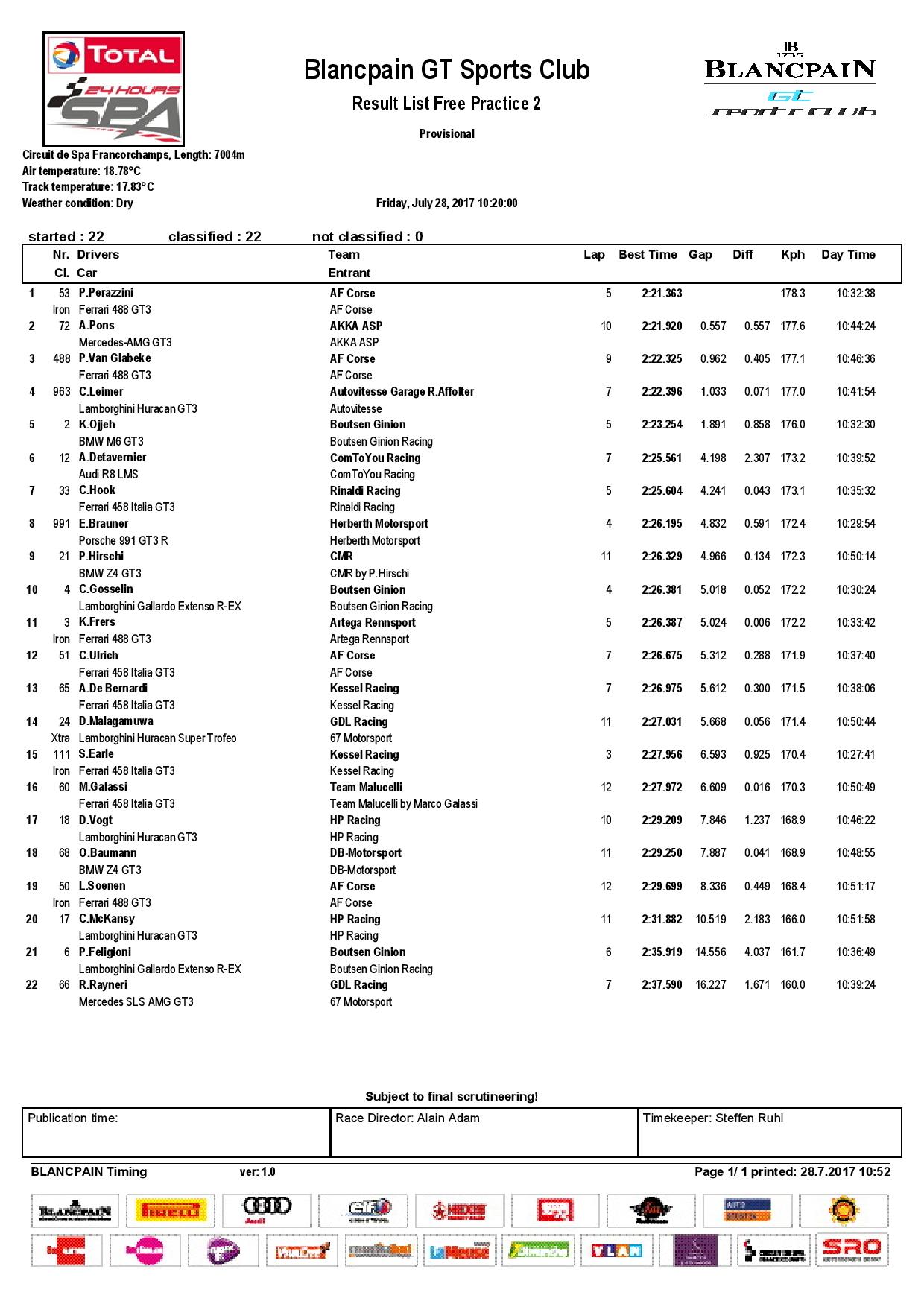 BLANCPAIN GT SPORTS CLUB FP2 RESULTS